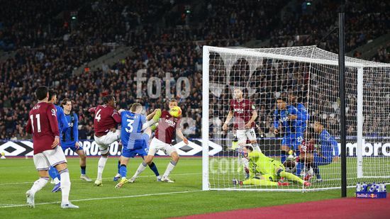 2892310 Londres, Inglaterra, 21 de fevereiro de 2026: Axel Disasi (4 West Ham United) tenta uma finalizacao durante a partida da Premier League entre West Ham United e AFC Bournemouth no Estadio de Londres, em Londres, Inglaterra. (Foto de Jay Patel/Sports Press Photo/SPP) (Jay Patel/Sports Press Photo/SPP)