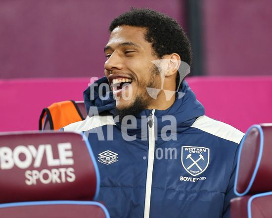 2892311 Londres, Inglaterra, 21 de fevereiro de 2026: Jean-Clair Todibo (25 West Ham United) faz uma piada no banco de reservas durante o jogo da Premier League entre West Ham United e AFC Bournemouth no Estadio de Londres, em Londres, Inglaterra. (Foto de Jay Patel/Sports Press Photo/SPP) (Jay Patel/Sports Press Photo/SPP)