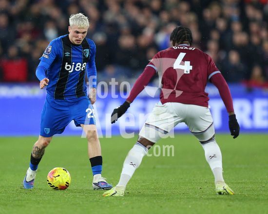 2892317 Londres, Inglaterra, 21 de fevereiro de 2026: James Hill (23 AFC Bournemouth) durante o jogo da Premier League entre West Ham United e AFC Bournemouth no Estadio de Londres, em Londres, Inglaterra. (Foto de Jay Patel/Sports Press Photo/SPP) (Jay Patel/Sports Press Photo/SPP)