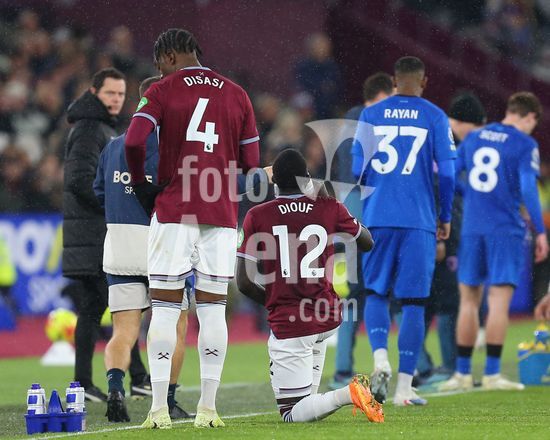 2892337 Londres, Inglaterra, 21 de fevereiro de 2026: Soungoutou Magassa (27 West Ham United) com dores apos sofrer uma pancada no corpo durante o jogo da Premier League entre West Ham United e AFC Bournemouth no Estadio de Londres, em Londres, Inglaterra. (Foto de Jay Patel/Sports Press Photo/SPP) (Jay Patel/Sports Press Photo/SPP)