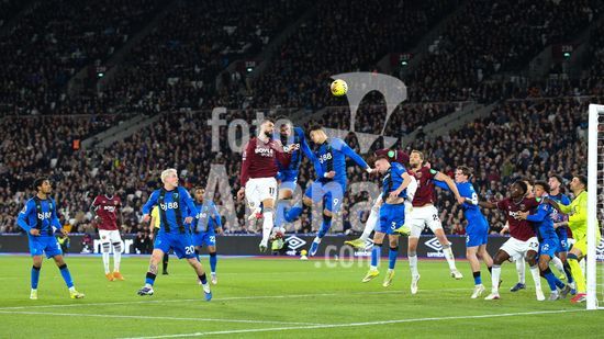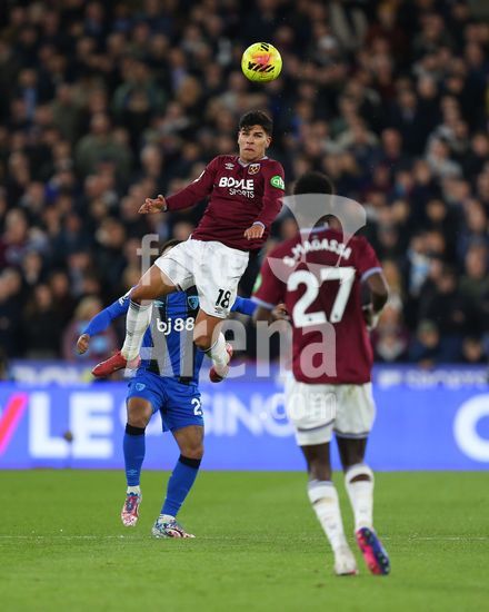 2892332 Londres, Inglaterra, 21 de fevereiro de 2026: Mateus Fernandes (18 West Ham United) ganha uma disputa de cabeca durante o jogo da Premier League entre West Ham United e AFC Bournemouth no Estadio de Londres, em Londres, Inglaterra. (Foto de Jay Patel/Sports Press Photo/SPP) (Jay Patel/Sports Press Photo/SPP)