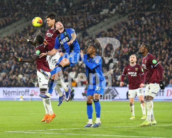 2892338 Londres, Inglaterra, 21 de fevereiro de 2026: Konstantinos Mavropanos (15 West Ham United) ganha uma disputa de cabeca defensiva durante o jogo da Premier League entre West Ham United e AFC Bournemouth no Estadio de Londres, em Londres, Inglaterra. (Foto de Jay Patel/Sports Press Photo/SPP) (Jay Patel/Sports Press Photo/SPP)
