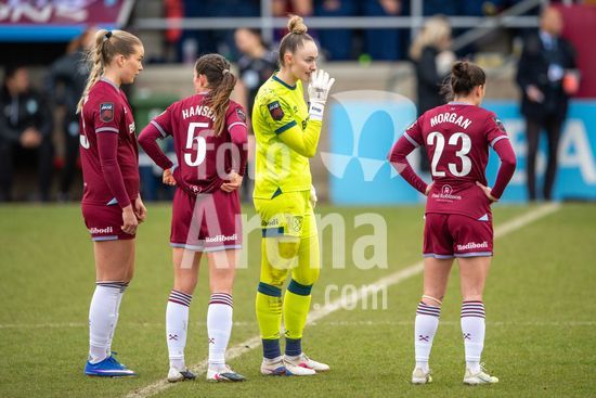 2915026 LONDRES, INGLATERRA - 29 DE MARCO: Jogadoras do West Ham e do London City Lionesses se reunem antes da partida da Barclays Women's Super League entre West Ham United e London City Lionesses no Chigwell Construction Stadium em 29 de marco de 2026 em Londres, Inglaterra. (Mike Turner/SPP)