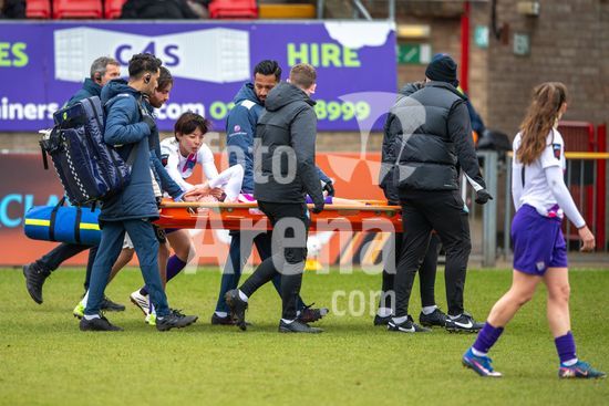 2915017 LONDRES, INGLATERRA - 29 DE MARCO: Kosovare Asllani (C) das Lionesses e retirada de maca do campo durante a partida da Barclays Women's Super League entre West Ham United e London City Lionesses no Chigwell Construction Stadium em 29 de marco de 2026 em Londres, Inglaterra. (Mike Turner/SPP)
