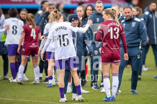 2915018 LONDRES, INGLATERRA - 29 DE MARCO: A treinadora do West Ham, Rita Guarino, com Sanni Franssi, das Lionesses, apos o apito final durante a partida da Barclays Women's Super League entre West Ham United e London City Lionesses no Chigwell Construction Stadium em 29 de marco de 2026 em Londres, Inglaterra. (Mike Turner/SPP)