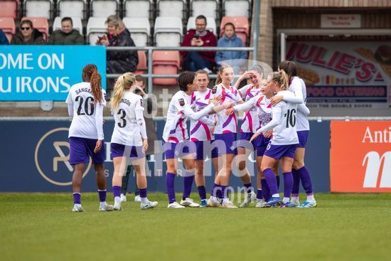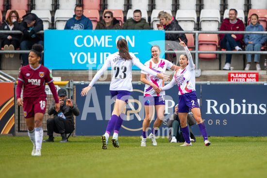 2915020 LONDRES, INGLATERRA - 29 DE MARCO: Oona Siren, do West Ham, comemora seu gol com as companheiras de equipe durante a partida da Barclays Women's Super League entre West Ham United e London City Lionesses, no Chigwell Construction Stadium, em 29 de marco de 2026, em Londres, Inglaterra. (Mike Turner/SPP)