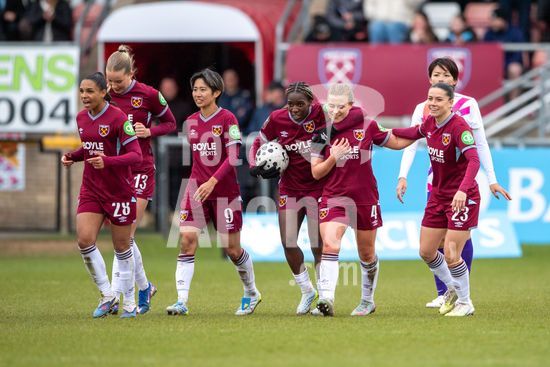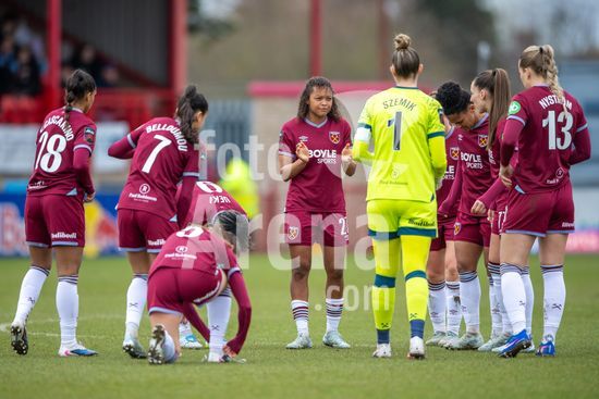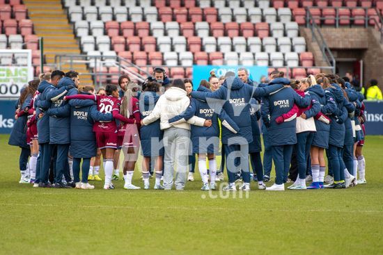 2915031 LONDRES, INGLATERRA - 29 DE MARCO: Jogadoras do West Ham se reunem apos a partida da Barclays Women's Super League entre West Ham United e London City Lionesses no Chigwell Construction Stadium em 29 de marco de 2026 em Londres, Inglaterra. (Mike Turner/SPP)