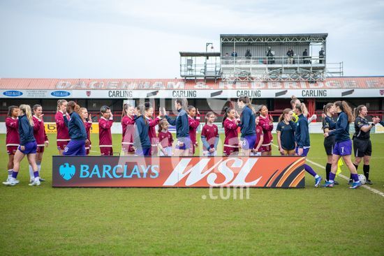 2915025 LONDRES, INGLATERRA - 29 DE MARCO: As jogadoras titulares se cumprimentam antes da partida da Barclays Women's Super League entre West Ham United e London City Lionesses no Chigwell Construction Stadium em 29 de marco de 2026 em Londres, Inglaterra. (Mike Turner/SPP)
