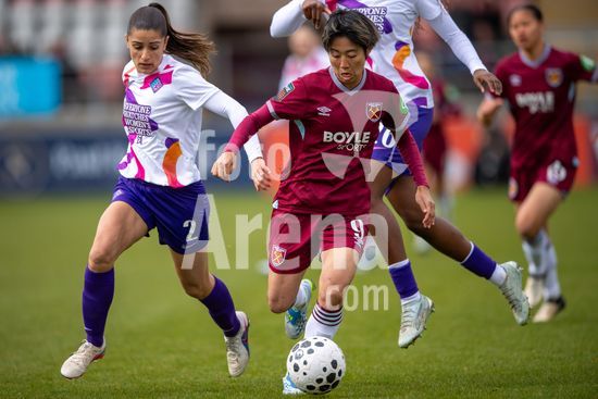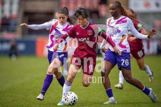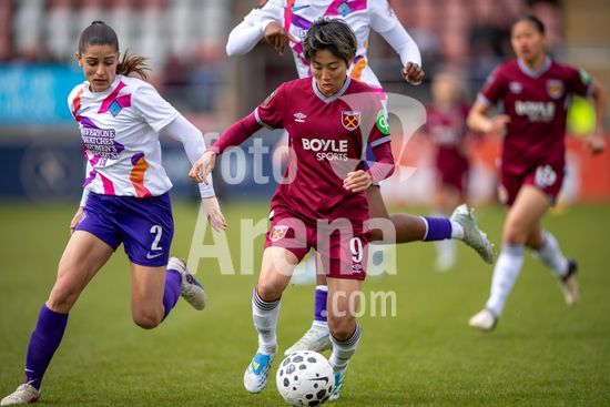 2915023 LONDRES, INGLATERRA - 29 DE MARCO: Riko Ueki, do West Ham, avanca com a bola durante a partida da Barclays Women's Super League entre West Ham United e London City Lionesses, no Chigwell Construction Stadium, em 29 de marco de 2026, em Londres, Inglaterra. (Mike Turner/SPP)