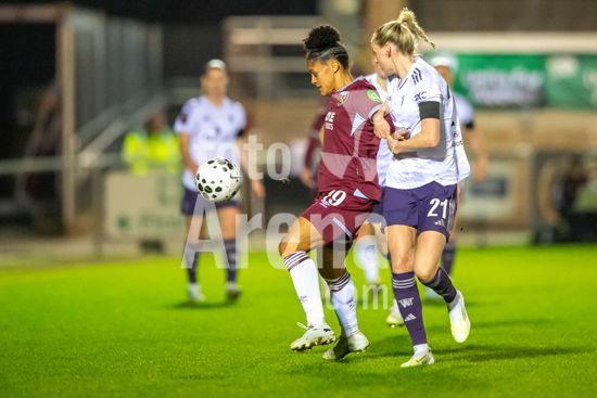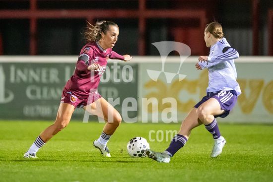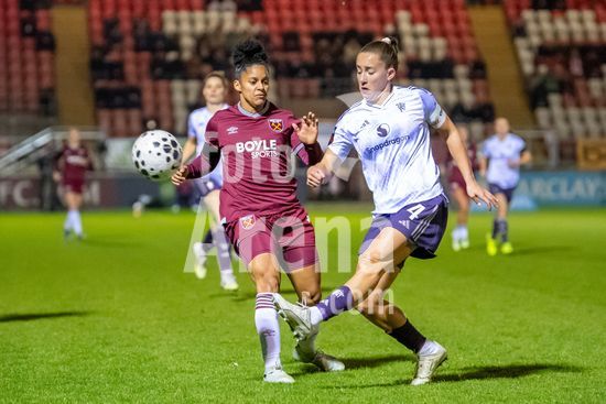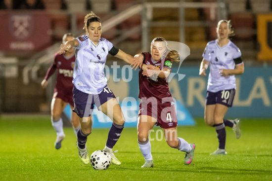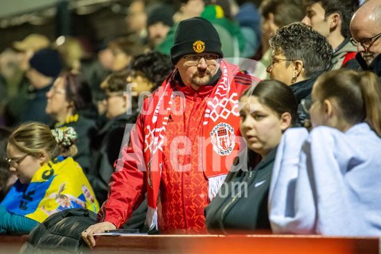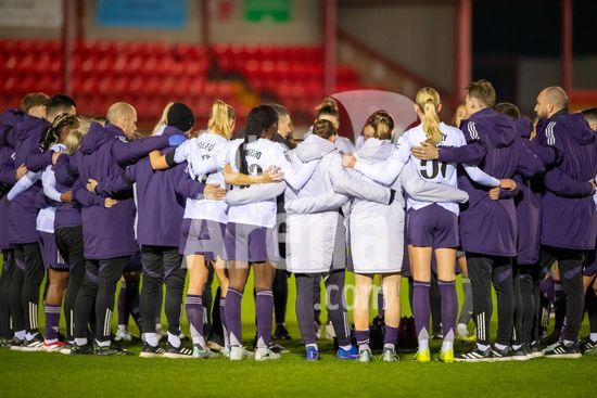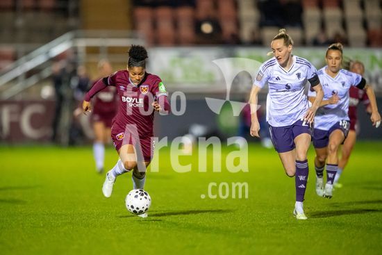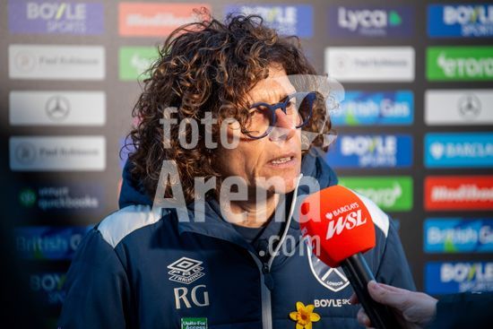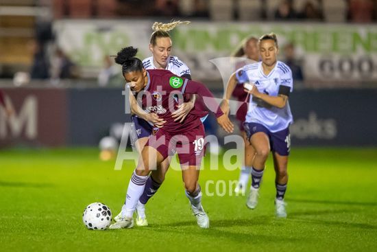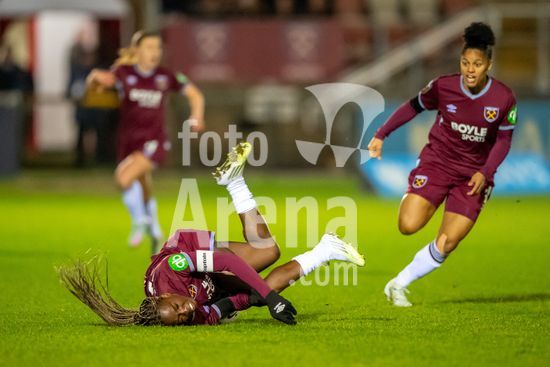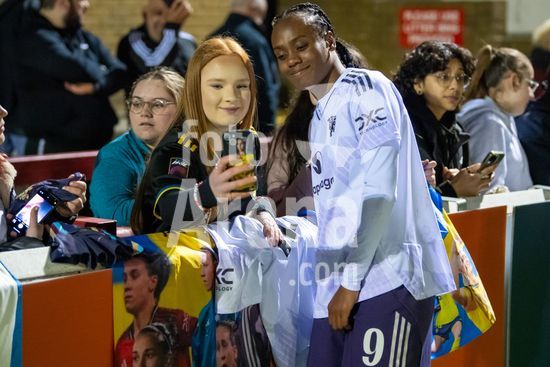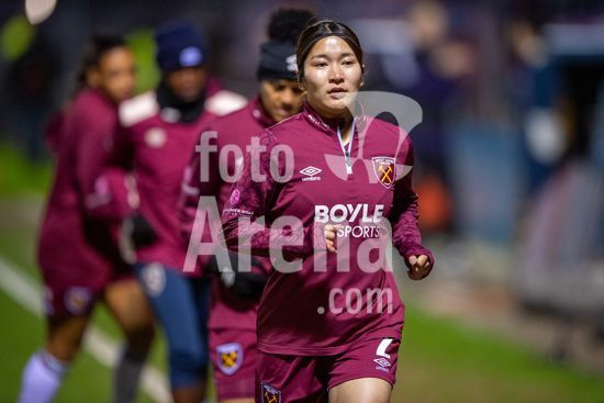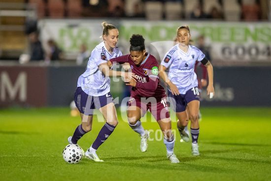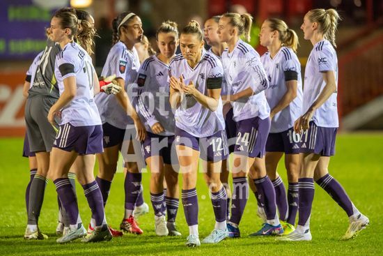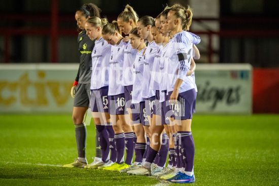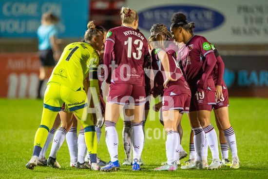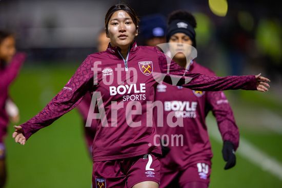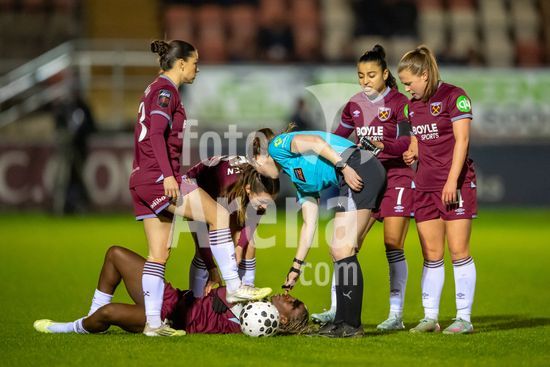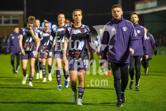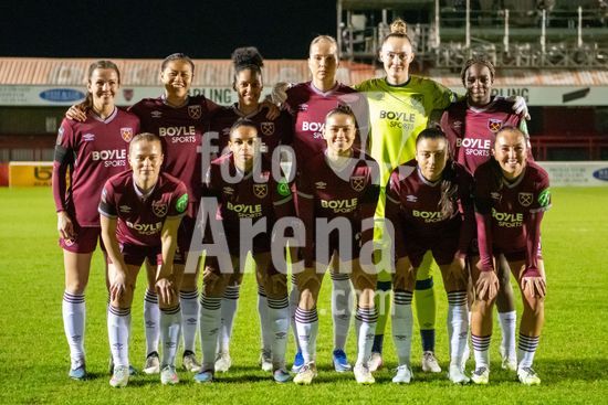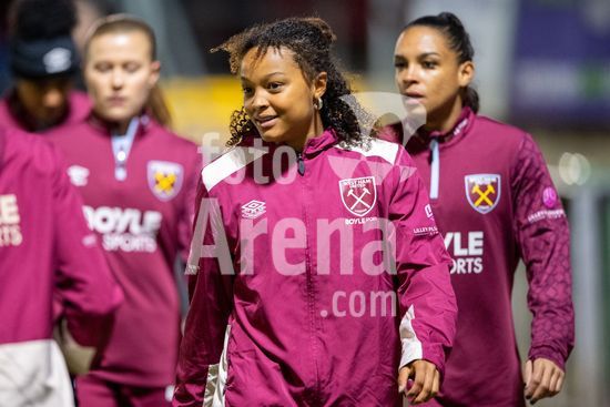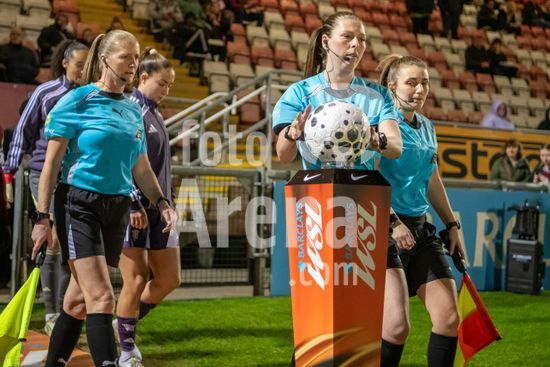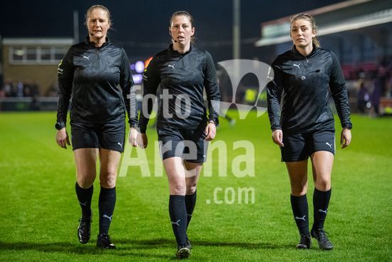 LONDRES, INGLATERRA - 18 DE MARCO: A arbitra da partida, Abigail Byrne, e suas assistentes completam o aquecimento antes do jogo da Barclays Women's Super League entre West Ham United e Manchester United no Chigwell Construction Stadium em 18 de marco de 2026 em Londres, Inglaterra. (Mike Turner/SPP)
