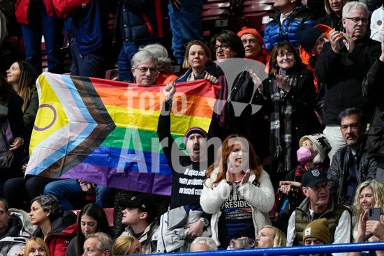 ny190226171312 A fan holds a pride flag as Amber Glenn of the U.S. competes during the free skating program of the women?s single skating event during the 2026 Milan Cortina Winter Olympics in Milan, Italy, on Thursday, Feb. 19, 2026. (Vincent Alban/The New York Times/Fotoarena)