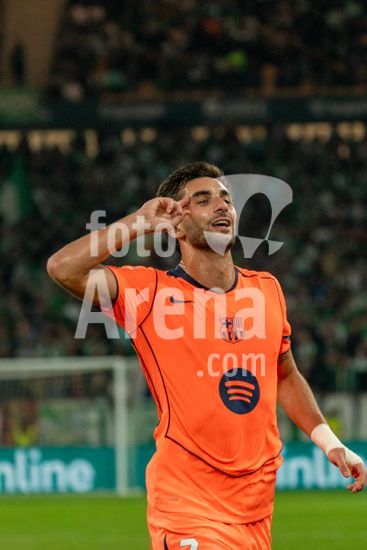 2854813 Ferran Torres (N7) comemora um gol durante a partida da La Liga EA Sports entre Real Betis e FC Barcelona no Estadio La Cartuja em 6 de dezembro de 2025, em Sevilha, Espanha. (Andres Lopez Sheridan / SPP)