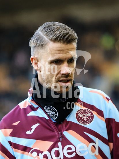2861432 Mathias Jensen (8 Brentford) aquece durante a partida de futebol da Premier League entre Wolverhampton Wanderers e Brentford no estadio Molineux em Wolverhampton, Inglaterra. (Natalie Mincher/SPP)