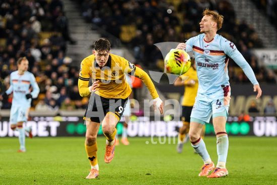 2861387 Jorgen Strand Larsen (9 Wolves) persegue a bola durante a partida de futebol da Premier League entre Wolverhampton Wanderers e Brentford no estadio Molineux em Wolverhampton, Inglaterra. (Natalie Mincher/SPP)