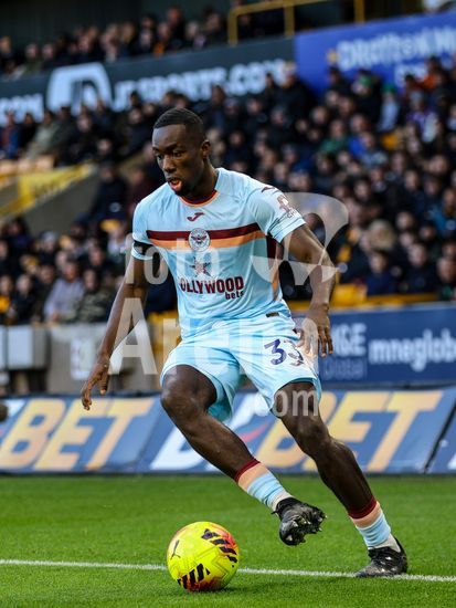 2861404 Michael Kayode (33 Brentford) com a bola durante a partida de futebol da Premier League entre Wolverhampton Wanderers e Brentford no estadio Molineux em Wolverhampton, Inglaterra. (Natalie Mincher/SPP)