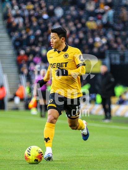 2861407 Hee Chan Hwang (11 Wolves) com a bola durante a partida da Premier League entre Wolverhampton Wanderers e Brentford no estadio Molineux em Wolverhampton, Inglaterra. (Natalie Mincher/SPP)