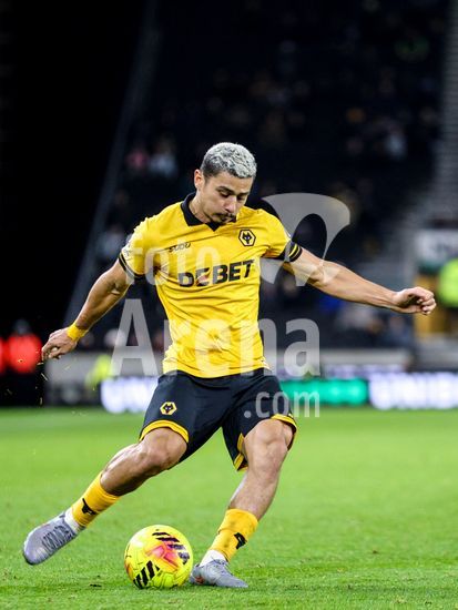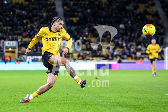 2860951 Mateus Mane (36 Wolves) com a bola durante a partida de futebol da Premier League entre Wolverhampton Wanderers e Brentford no estadio Molineux em Wolverhampton, Inglaterra. (Natalie Mincher/SPP)