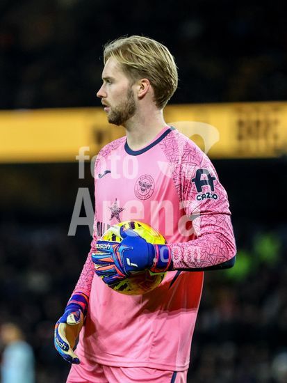 2860964 O goleiro Caoimhin Kelleher (1 Brentford) em acao durante a partida de futebol da Premier League entre Wolverhampton Wanderers e Brentford no estadio Molineux em Wolverhampton, Inglaterra. (Natalie Mincher/SPP)