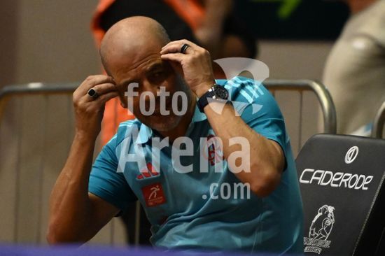 2917563 Imagens da partida de basquete entre o Caxias do Sul Basquete e o Flamengo, válida pelo NBB 25/26, disputada no Ginásio do SESI, em Caxias do Sul. Técnico do Flamengo, Sérgio Hernandez. Caxias do Sul, RS (02).
