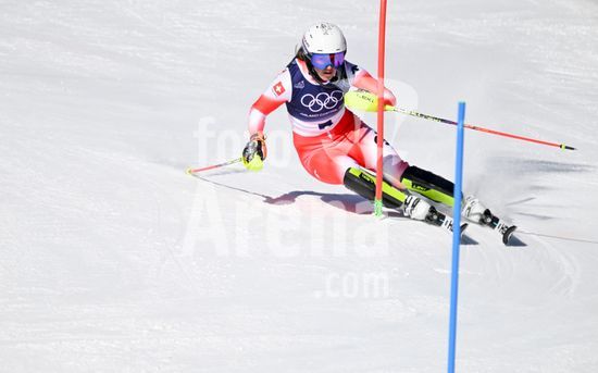 ny180226112110 Wendy Holdener, of Switzerland, during the first run of the women's slalom competition at the 2026 Milan Cortina Winter Olympics in Cortina d'Ampezzo, Italy, Feb. 18, 2026. (James Hill/The New York Times/Fotoarena)