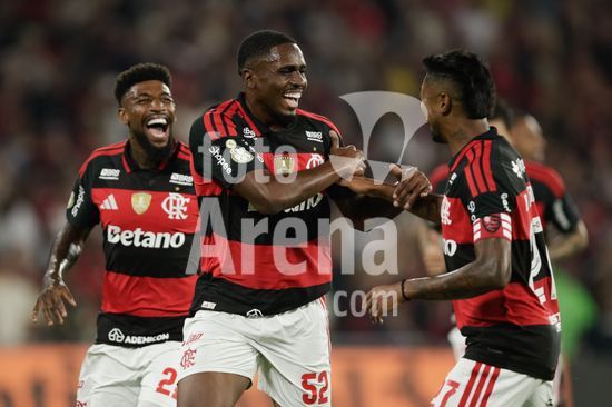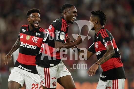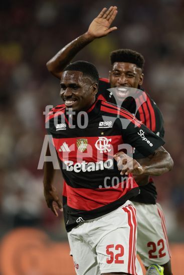 2930167 RIO DE JANEIRO, BRASIL - 22 DE ABRIL: EVERTTON ARAUJO, do Flamengo, comemora após marcar o primeiro gol da equipe durante a partida entre Flamengo e Vitória, válida pela Copa do Brasil 2026, no Estádio do Maracanã, em 22 de abril de 2026, no Rio de Janeiro, Brasil.