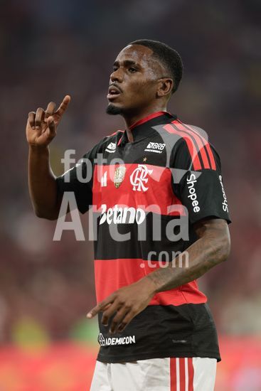 2930171 RIO DE JANEIRO, BRASIL - 22 DE ABRIL: EVERTTON ARAUJO, do Flamengo, comemora após marcar o primeiro gol da equipe durante a partida entre Flamengo e Vitória, válida pela Copa do Brasil 2026, no Estádio do Maracanã, em 22 de abril de 2026, no Rio de Janeiro, Brasil.