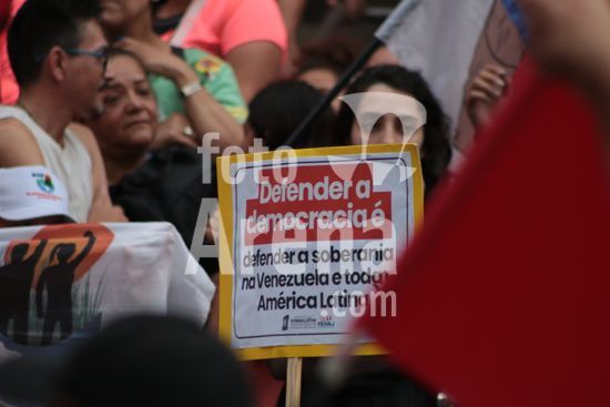 2875336 PT, PSOL e movimentos sociais participam do ato continental pedindo soltura de Maduro, com o lema ?Fora EUA da Venezuela e da América Latina?. A mobilização ocorre nesta quarta,(28), em frente ao Theatro Municipal em São Paulo.