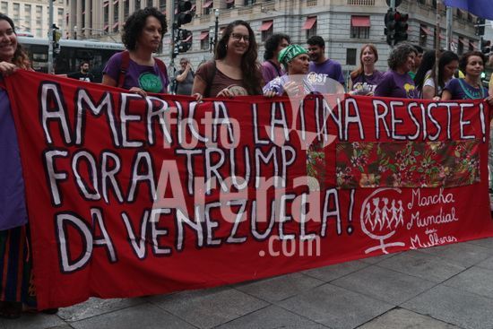 2875338 PT, PSOL e movimentos sociais participam do ato continental pedindo soltura de Maduro, com o lema ?Fora EUA da Venezuela e da América Latina?. A mobilização ocorre nesta quarta,(28), em frente ao Theatro Municipal em São Paulo.