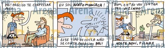 aialmm3964 ADÃO ITURRUSGARAI, MUNDO MONSTRO, ALINE, FOLHA DE SÃO PAULO, 30.08.2009.Diálogo- Pai! Precito te confessar algo... Eu sou ninfomaníaca!- Esse tipo de coisa não se conta para um pai!- Bom, então vou contar pro vizinho!- Volte aqui, filha!!