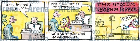 aihlmm3927 ADÃO ITURRUSGARAI, MUNDO MONSTRO, HOMEM-LEGENDA, FOLHA DE SÃO PAULO, 16.07.2009.Diálogo- O seu humor é muito bom... Mas é um humor para poucos!- Só a sua mãe que deve gostar! Rssss.The Homem Legenda is back.