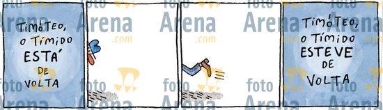 aittmm4001 ADÃO ITURRUSGARAI, MUNDO MONSTRO, TIMÓTEO, O TÍMIDO, FOLHA DE SÃO PAULO, 12.10.2009.DiálogoComo Timóteo, o tímido vai fazer para passar de uma porta à outra sem ser visto? Timóteo: tímido e campeão de 100m rasos.