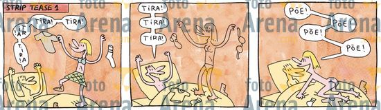 aivari09006 ADÃO ITURRUSGARAI, MUNDO MONSTRO, 3895, VARIEDADES, FOLHA DE SÃO PAULO, 09.06.2009.DiálogoStrip tease 1.- Tira! Tira! Tira! Tira! Tira!- Põe! Põe! Põe! Põe! Põe!