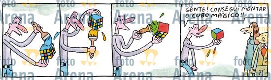 aivari09009 ADÃO ITURRUSGARAI, MUNDO MONSTRO, 3910, VARIEDADES, FOLHA DE SÃO PAULO, 26.06.2009.Diálogo- Gente! Consegui montar um cubo mágico!!