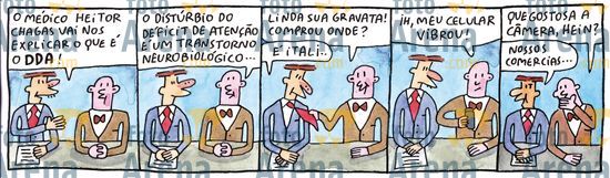 aivari09010 ADÃO ITURRUSGARAI, MUNDO MONSTRO, 3911, VARIEDADES, FOLHA DE SÃO PAULO, 28.06.2009.Diálogo- O médico Heitor Chagas vai nos explicar o que é DDA!- O distúrbio do déficit de atenção é um transtorno neurobiológico... Linda sua gravata! Comprou onde?- É itali...- Ih, meu celular vibrou! Que gostosa a câmera, hein?- Nossos comerciais...