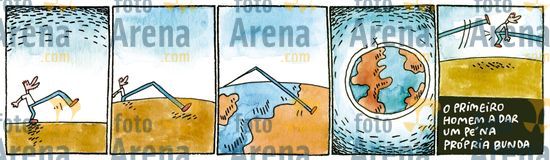 aivari09015 ADÃO ITURRUSGARAI, MUNDO MONSTRO, 3920, VARIEDADES, FOLHA DE SÃO PAULO, 08.07.2009.DiálogoO primeiro homem a dar um pé na própria bunda.