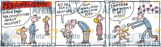 aivari09018 ADÃO ITURRUSGARAI, MUNDO MONSTRO, 3926, VARIEDADES, FOLHA DE SÃO PAULO, 15.07.2009.DiálogoPersonal cupido.- Como faço para conquistar aquela mulher?- Diz pra ela o seguinte... Pchh, pchh, pchh, pchh...- Cantada boa demais dá nisso!