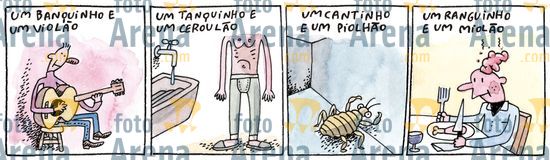 aivari09024 ADÃO ITURRUSGARAI, MUNDO MONSTRO, 3942, VARIEDADES, FOLHA DE SÃO PAULO, 03.08.2009.DiálogoUm banquinho e um violão.Um tanquinho e um ceroulão.Um cantinho e um piolhão.Um ranquinho e um miolão.