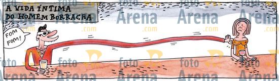 aivari09029 ADÃO ITURRUSGARAI, MUNDO MONSTRO, 3951, VARIEDADES, FOLHA DE SÃO PAULO, 14.08.2009.DiálogoA vida íntima do Homem Borracha.- Fom fom!