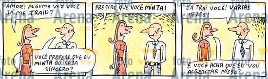 aivari09033 ADÃO ITURRUSGARAI, MUNDO MONSTRO, 3968, VARIEDADES, FOLHA DE SÃO PAULO, 03.09.2009.Diálogo- Amor! Alguma vez você já me traiu?- Você prefere que eu minta ou seja sincero?- Prefiro que você minta!- Já traí você! Várias vezes!- E você acha que eu vou acreditar nisso?