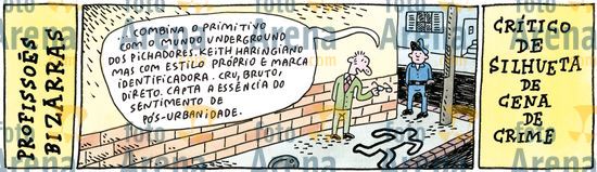 aivari09054 ADÃO ITURRUSGARAI, MUNDO MONSTRO, 4027, VARIEDADES, FOLHA DE SÃO PAULO, 12.11.2009.DiálogoProfissões bizarras. Crítico de silhueta de cena de crime.- ...combina o primitivo com o mundo underground dos pichadores. Keith Haringiano mas com estilo próprio e marca identificadora. Cru, bruto, direto. Capta a essência do sentimento de pós-urbanidade.