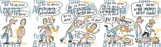 aivari09063 ADÃO ITURRUSGARAI, MUNDO MONSTRO, 4030, VARIEDADES, FOLHA DE SÃO PAULO, 16.11.2009.Diálogo- Eu te amo! Eu te amo! Eu te amo! Eu te amo! Eu te amo!...- Dez! Nove! Oito! Sete! Seis! Cinco...