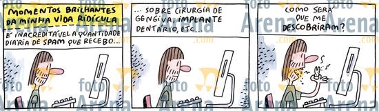 aivrmm3989 ADÃO ITURRUSGARAI, MUNDO MONSTRO, MINHA VIDA RIDÍCULA, FOLHA DE SÃO PAULO, 28.09.2009.DiálogoMomentos brilhantes da minha vida ridícula.É inacreditável a quantidade diária de Spam que recebo, sobre cirugia de gengiva, implante dentário, etc. Como será que me descobriram?