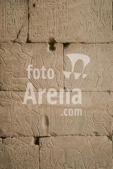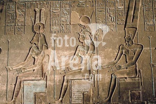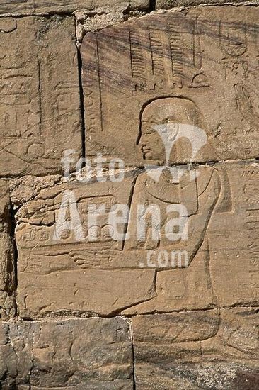 akg421886 Deir el-Medinah (Thebes West, Egypt), Tempel (built under Ptolemy IV Philopator, completed under Philometor and Euergetes II. Dedicated to Hathor und Maat). 3rd/2nd century BC. Partial view of a relief. Photo.