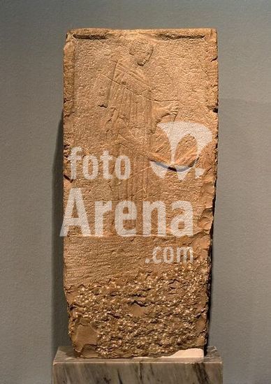 akg1327210 Griechisch, Mitte 5.Jahrhundert v.Chr.-Weihrelief an Artemis: Artemis mit Köcher, Bogen und brennender Fackel ( Weihgeschenk einer Frau mit dem Namen Polystrata).-Kalkstein, Höhe 63 cm. Aus Argos. Sk 682. Museum: Staatl. Mus., Antikensammlung., BERLIN.