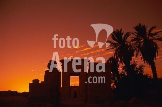 akg895882 Hibis-Hiblet (Oase Kharga, Westliche Wüste, Ägypten), Amun-Tempel (Zeit der Perserherrschaft, 27.Dynastie, Zeit des Darius I. und Darius II.; 6./5.Jh.v.Chr.).-Teilansicht: Tor im Abendrot.-Foto, undat.