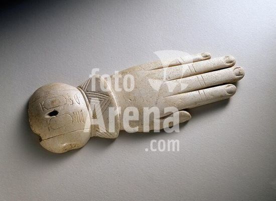 akg828702 Egyptian, New Empire, 18th or 19th Dynasty, most likely during reign of Ramses II.-Castanets in the form of a hand with two cartouches for the name of the King.-Ivory; 15 cm long, maximum wideth: 4.8 cm. Origin: Tanis. Museum: Egyptian Museum., KAIRO.