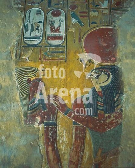 akg867210 Egyptian, New Kingdom, 19th dynasty.-Horus and a deceased.-Wall painting from the tomb of a royal official. Western Thebes, Dra Abul'-Naga.