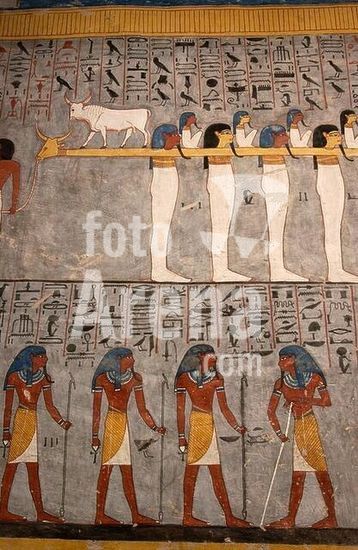 akg272221 Egyptian, New Kingdom, 18th dynasty, c. 1370 BC. Funeral procession; detail: men carrying the grave furnishings. Wall painting from the tomb of Ramose, vizier under Amenhotep III and Akhenaton. (Amenhotep IV), Dayr al-Madinah, Thebes West, tomb of Ramose (TT 55).