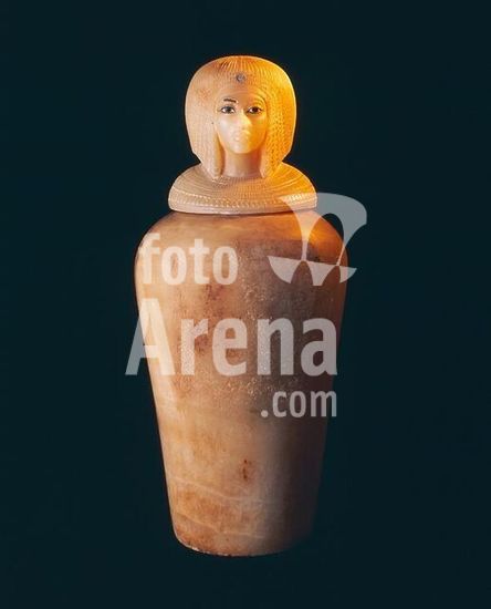 akg867461 Kija, Nebenfrau des ägyptischen Königs Echnaton (Amenophis IV.).-Kanope der Kija.-Neues Reich, 18. Dynastie, Amarnazeit, um 1350 v.Chr. Kalzit, Höhe (mit Deckel) 52,9 cm; Dm. 23,3 cm. Herkunft: Tal der Könige, Grab KV 55. JE 39637 Foto, 2004. Museum: Egyptian Museum., KAIRO.