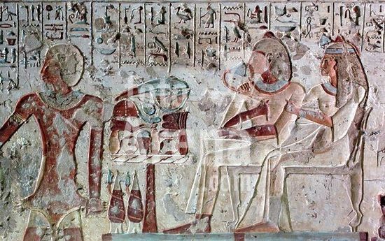 akg866975 Seti I, Egypt.pharaoh, 19th dynasty, 1290-1279 BC.-Seti I before Re-Harakhte.-Wall painting fr.the tomb of Pharaoh Seti I, Thebes-West, Valley of the Kings, KV 17.